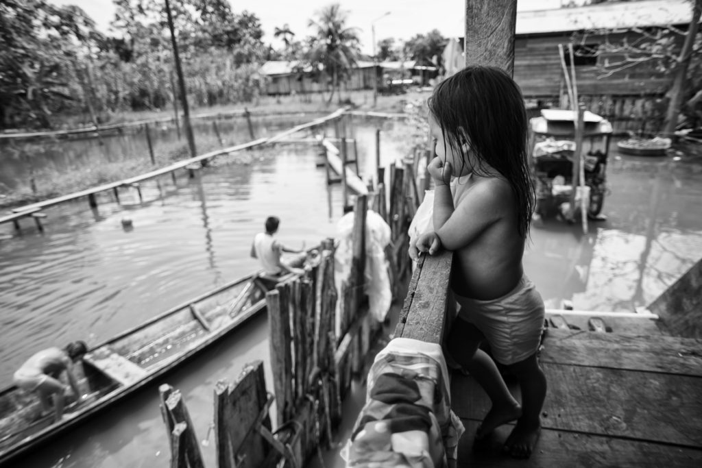 Each year between October and April the river basin receives precipitation that raises the water flow up to 9 meters more, this documentation generates renovation processed in the echo system, altering the social dynamic and the landscapes. The project was developed in “TRES ESQUINAS” (three corners) the frontier between Colombia, Peru and Brazil. The inherent connection between the kids and water and the spontaneous way of acting with their territory, has nurtured the narrative and reflection about the change in the social dynamics and the activities with the bigger water flow, viewed with the poetic vision and the mystic that the legends of the river’s origin bring.